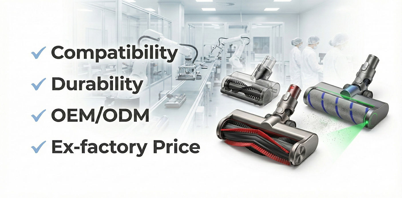 techTongBo is a 10+ year professional OEM/ODM manufacturer specializing in vacuum cleaner brush heads and accessories, fully compatible with Dyson, Shark, Roborock, Dreame, Eufy, Tineco, Miele, and most major brands.